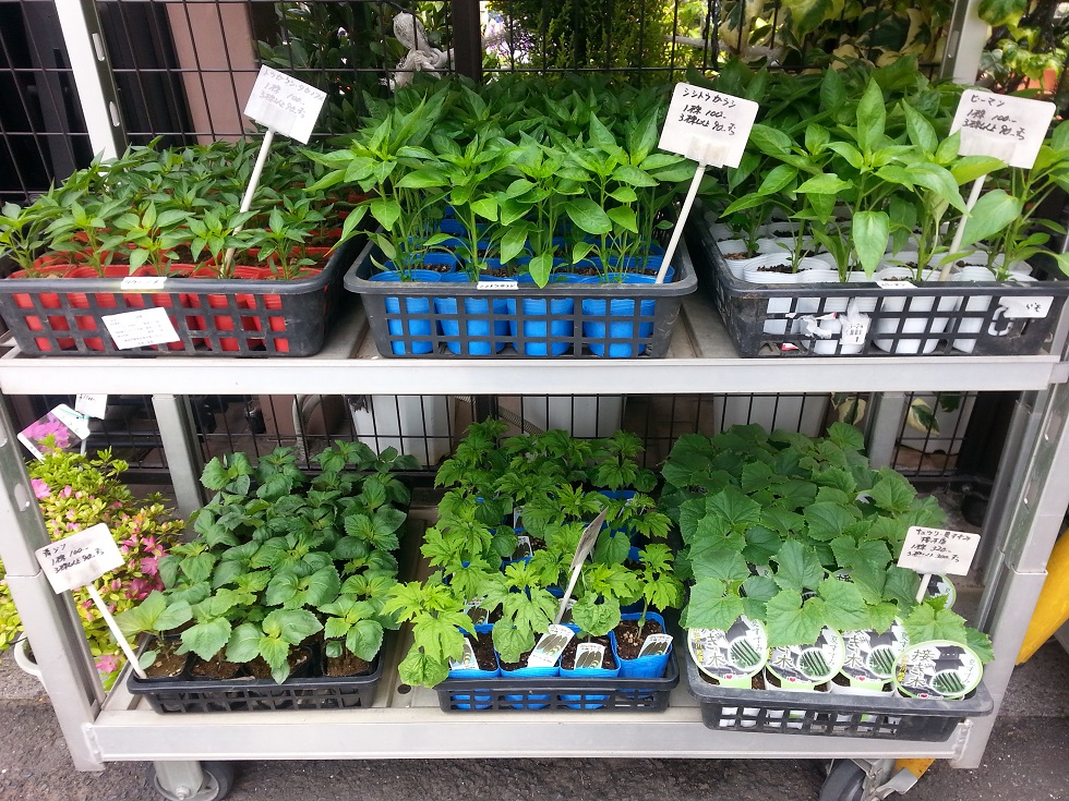 野菜苗 Posted on 2014年4月18日 by ando 暖かくなってきましたので、野菜苗が入荷いたしました! トマトやキュウリなどは病気の出にくい接ぎ木苗にこだわって仕入れております。 これからゴールデンウィークの頃まで随時入荷いたしますので、この夏自家菜園を楽しむご予定の方はどうぞお早めに!!